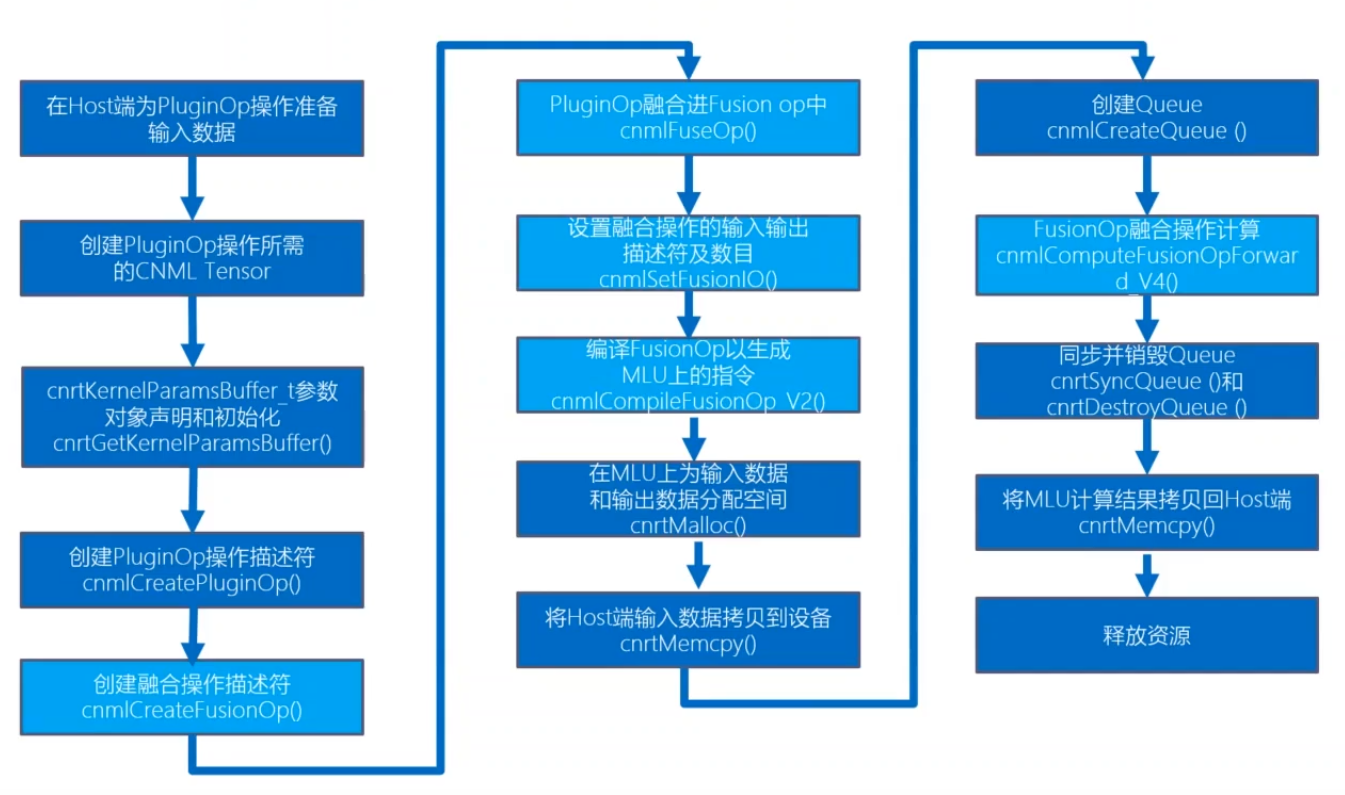 - 自定义的算子可以与 CNML 中已有算子实现执行逻辑同一,从而利用 CNML 的特性(融合执行、离线指令生成等)