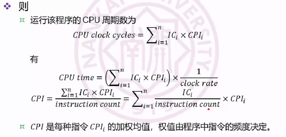 - \(CPI_i\)是第i种指令的平均时钟周期数